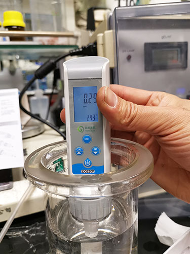 可以直接置于水中測試:確保浮水屏幕朝上,電極完全接觸水體,讀數接口;